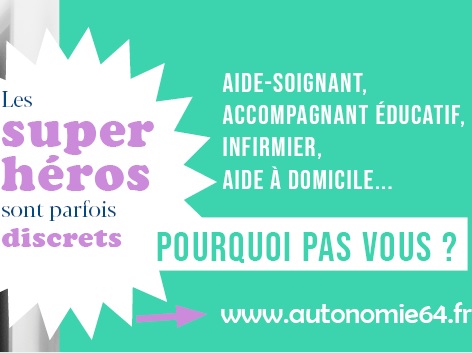 Les super héros sont parfois discrets Aide-soignant, accompagnant éducatif, infirmier, aide à domicile… pourquoi pas vous ? Découvrir les métiers de l’autonomie Publié le 21 mars 2022 Article précédent Meilleurs Voeux Article suivant Temps forts de juin à l'AID 64